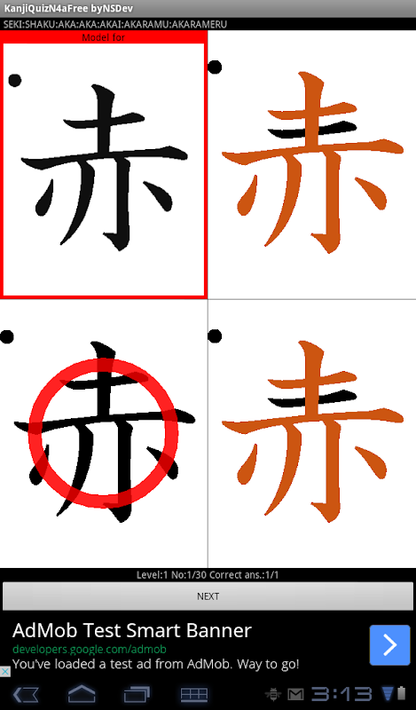 It is a quiz game to find the same Kanji character and role model.