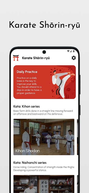 此应用程序将为您提供围绕不同 Katas 的精选内容。您将能够观看老师执行型的视频,以及他们正在教授或纠正学生的其他一些视频。