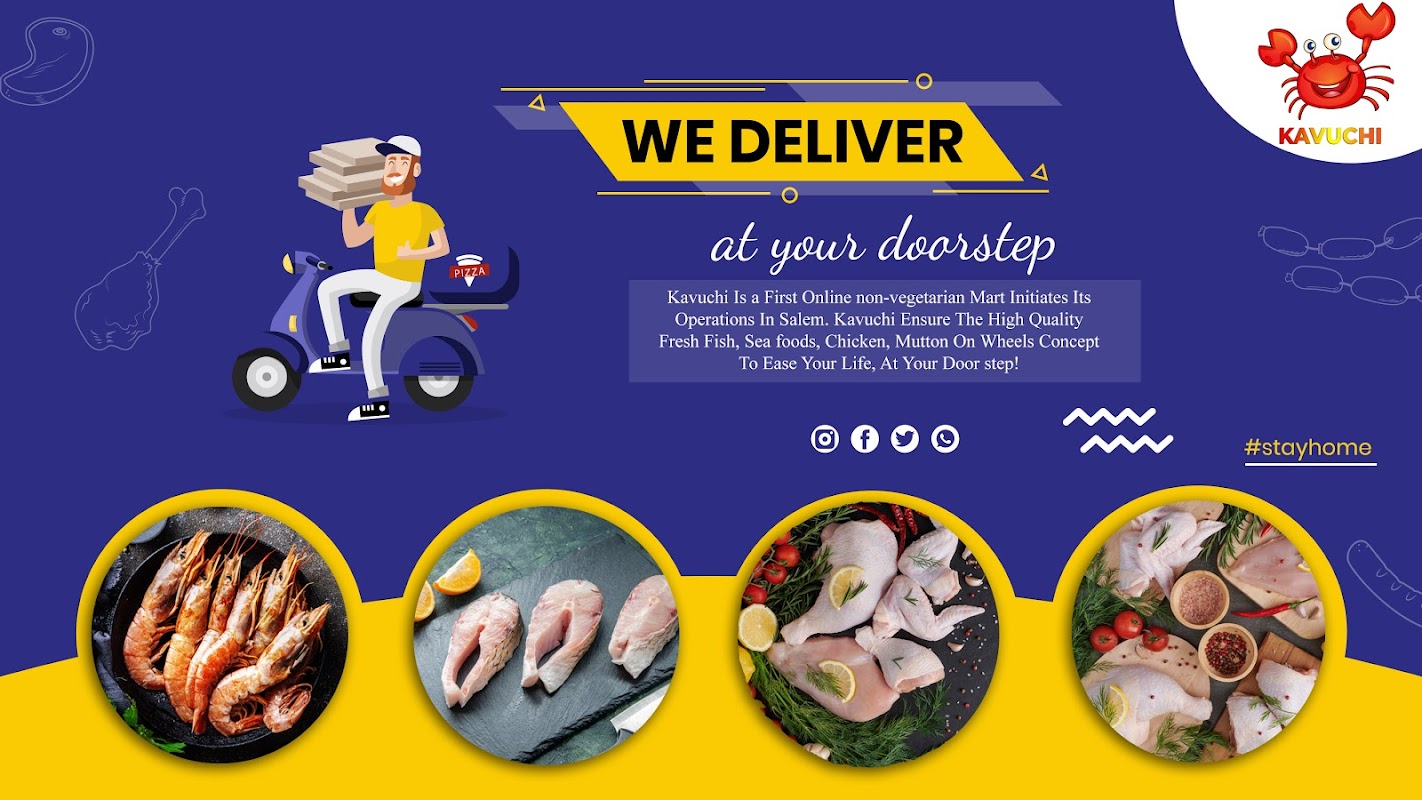 Kavuchi Is a First Online non-vegetarian Mart Initiates Its Operations In Salem. Kavuchi Ensure The High Quality Fresh Fish, Sea foods, Chicken, Mutton On Wheels Concept To Ease Your Life, At Your Door step!
