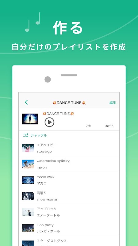 例)“我希望这首歌在驱动时听到的”,“在卡拉OK歌曲唱得好”,“放松的歌”,“迪斯尼组曲”,“情歌”,“瑜伽健身歌”,“游戏声音”,“舞曲”,“快乐的歌”,“YouTube的更好歌曲“”俱乐部的音乐“”经典怀旧‘’DJ混音“” BGM‘’我想要的歌曲“”你想你就行听到的锻炼过程中要听的歌曲,‘’声优偶像的歌“”你想在下班听到的歌曲“听“现场设置列表”,“电视·CM曲”等等...