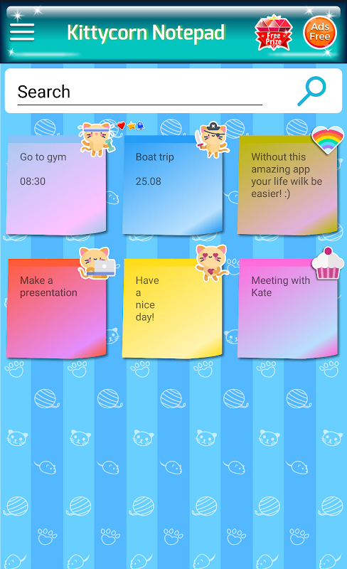 ★ Kittycorn Notepad 是一款设计精美的应用程序,非常适合想要记住很多事情的女孩!