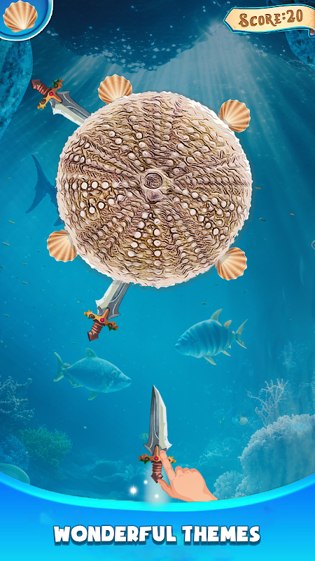 但这还不是全部 - 用刀击打贝壳会带来一系列奖励!累积积分并解锁一系列独特的剃刀般锋利的刀,这些刀可提供增强的性能,让您在投掷刀的艺术中占据优势。