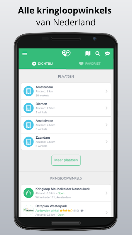 回收站应用程序,你必须在任何时间,从慈善商店在荷兰的任何地方的信息上的手。在另一个城市有趣的新旧货店的购物之旅中发现和搜索特定的建筑产品。回收站应用程序,你立即看到的位置,联系方式,营业时间,店内和评论从其他旅客的印象。