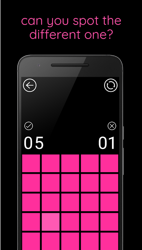 Kuku Kube - 色觉测试是一款有趣的游戏,将挑战您的视觉能力。规则很简单:找到与其他颜色略有不同的图块,然后点击它。找到后,屏幕上会出现一组新的图块,您必须集中注意力才能发现不同的图块。