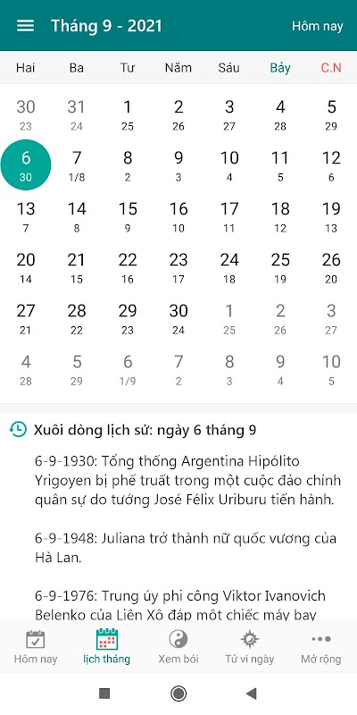 - Xem lịch ngày âm, dương, ngày lễ tiết trong năm.