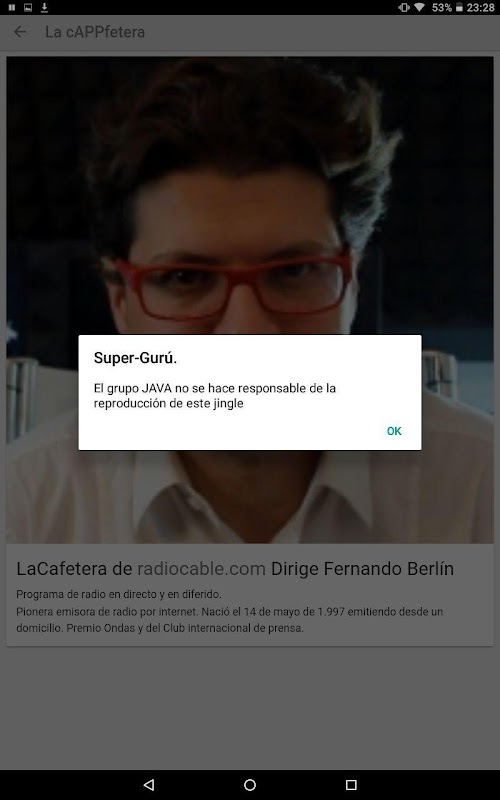 应用程序收听RadioCable.com的“La Cafetera”电台节目。