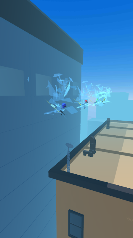 Collect sticks by breaking the boxes and build ladders with the sticks to reach the helicopter first.