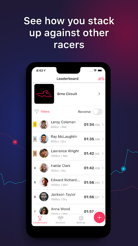 - 排行榜。看看您如何与其他赛车手较量。每个赛道都有一个排行榜。
