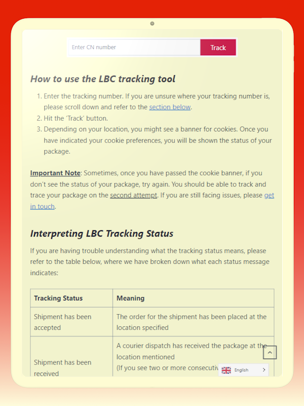 LBC Tracking 是一款追踪 LBC Express 包裹的工具