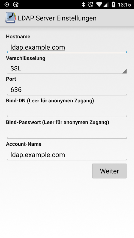 the Android accounts and allows the synchronization of contacts stored in a LDAP