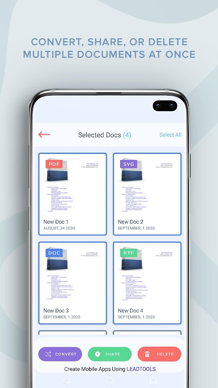 The LEADTOOLS Document Viewer gives users the ability to view, share, and convert documents and images into many different file formats. Users have a variety of options to upload documents through live capture, photo gallery, or the cloud.