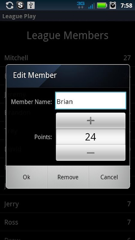 Keep track of points in an ongoing league! Let your league members earn points via colorful 'achievements' each week, or simply add and subtract points directly.