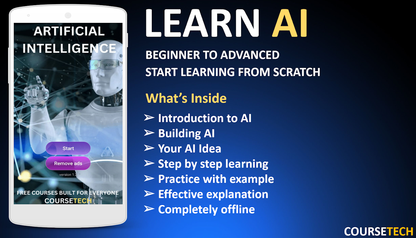 让您免费学习人工智能的最佳应用程序。那么,你还在等什么?立即下载该应用程序,成为人工智能专家。