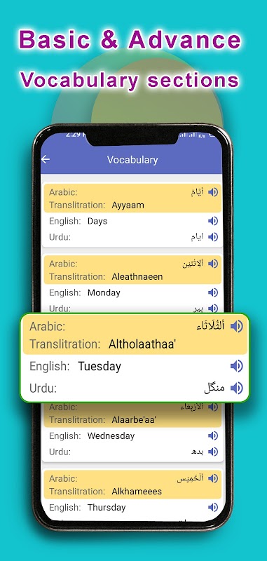这个程序专注于短语和对话。因此,通过使用短语和对话,该过程可以在很短的时间内学习阿拉伯语。此学习阿拉伯语应用程序需要学习阿拉伯语言或说阿拉伯语的许多课程。我们的《古兰经》也是阿拉伯语,因此,此应用程序还可以帮助您更好地理解《古兰经》中的文字。此学习阿拉伯语应用程序每天包含不同的课程,通过它很容易在几天内学习或说阿拉伯语。这个学习阿拉伯语的应用程序包含数千个单词和短语,通过使用短语,学习阿拉伯语非常容易。这个程序是给大家的一门完整的阿拉伯语课程。