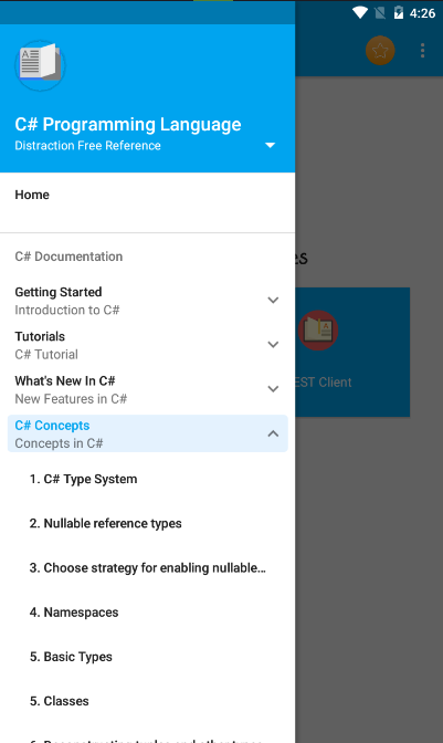 该应用程序为您提供有关C#的完整文档。这就是为什么您需要安装此应用程序并使用它来学习C#的原因: