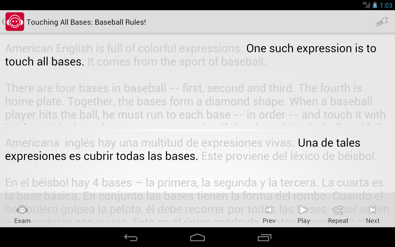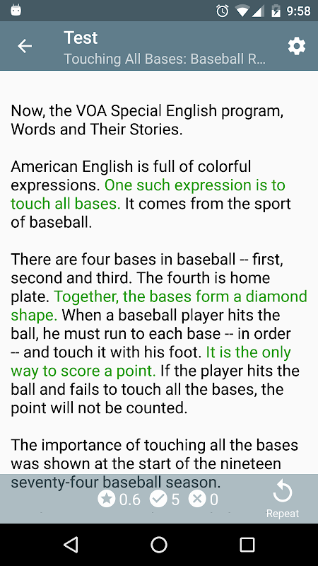 应用程序有英语言语知觉测试 - 你应该检查句子的英文文本由扬声器发言。