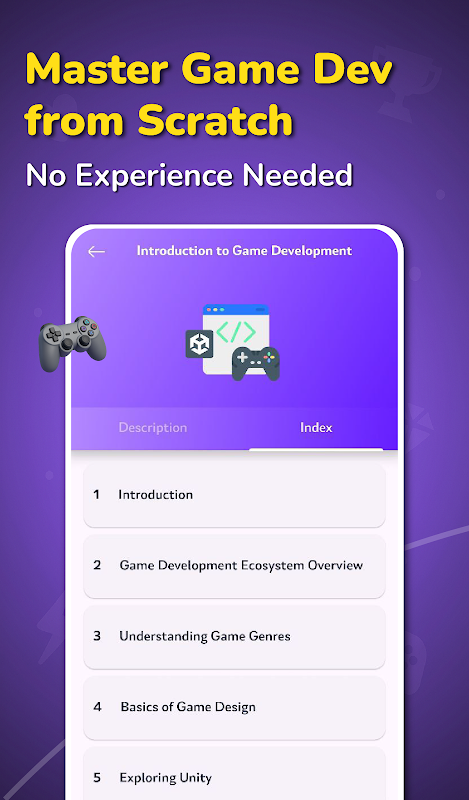 如果您曾经想学习游戏开发、编程或构建游戏,这款应用将是您的理想起点。通过 C#、Unity、虚幻引擎和真实的编程练习,您将从新手成长为自信的游戏开发者。