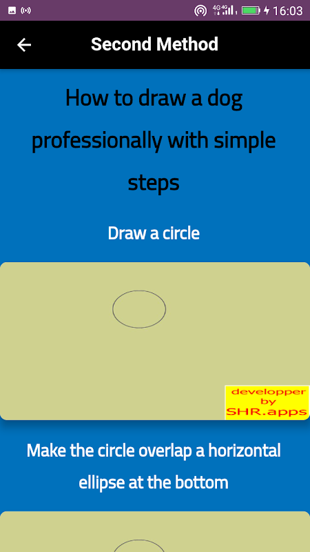 这个应用程序包含许多方法,可以为初学者轻松地一步一步地画一条狗