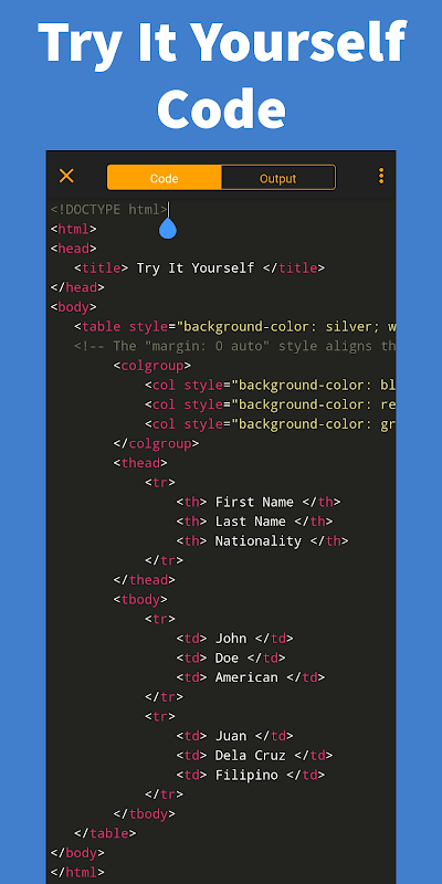 通过自己动手,代码游乐场/编辑和测验来学习HTML离线!