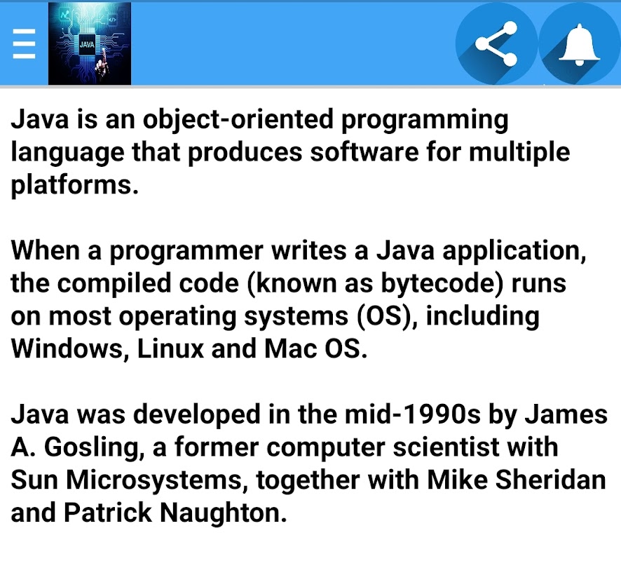 Learn Learn Java app contains :