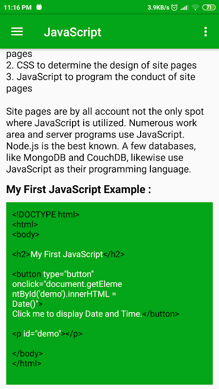 在此应用程序中,您将获得JavaScript主题列表及其描述以及示例。