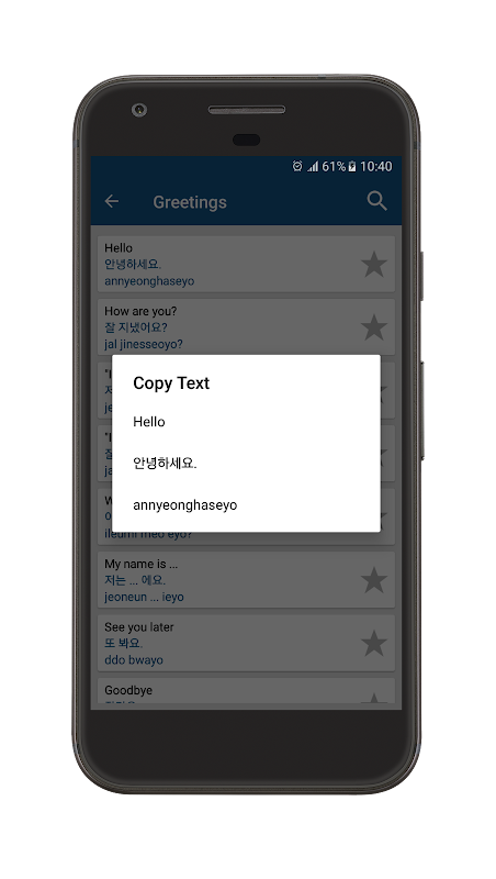 Easily learn Korean phrases and words.