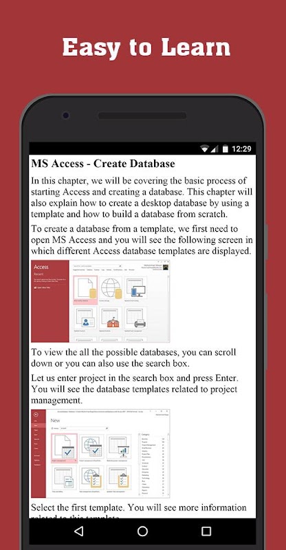 - All OFFLINE tutorials, can be used without the need for internet connection