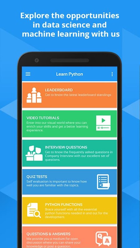学生和工作寻求者:该应用程序提供易于理解的学习资料和视频。随着最新的面试问题定期更新,Python应用程序有助于在Python开发人员领域创造机会。