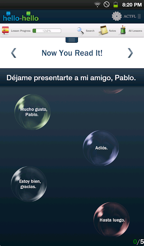 Hello-Hello西班牙语 这一语言课程完善,每种语言有30课。该课程与美国外语教学委员会 [American Council on the Teaching of Foreign Languages (ACTFL)] 合作,确保课程符合科学方法论,而该方法论是经研究证实有效的。全部课程都是基于实际状况的对话,而不是脱离语境的单词和短语堆砌。