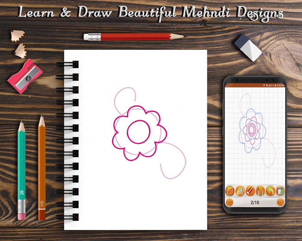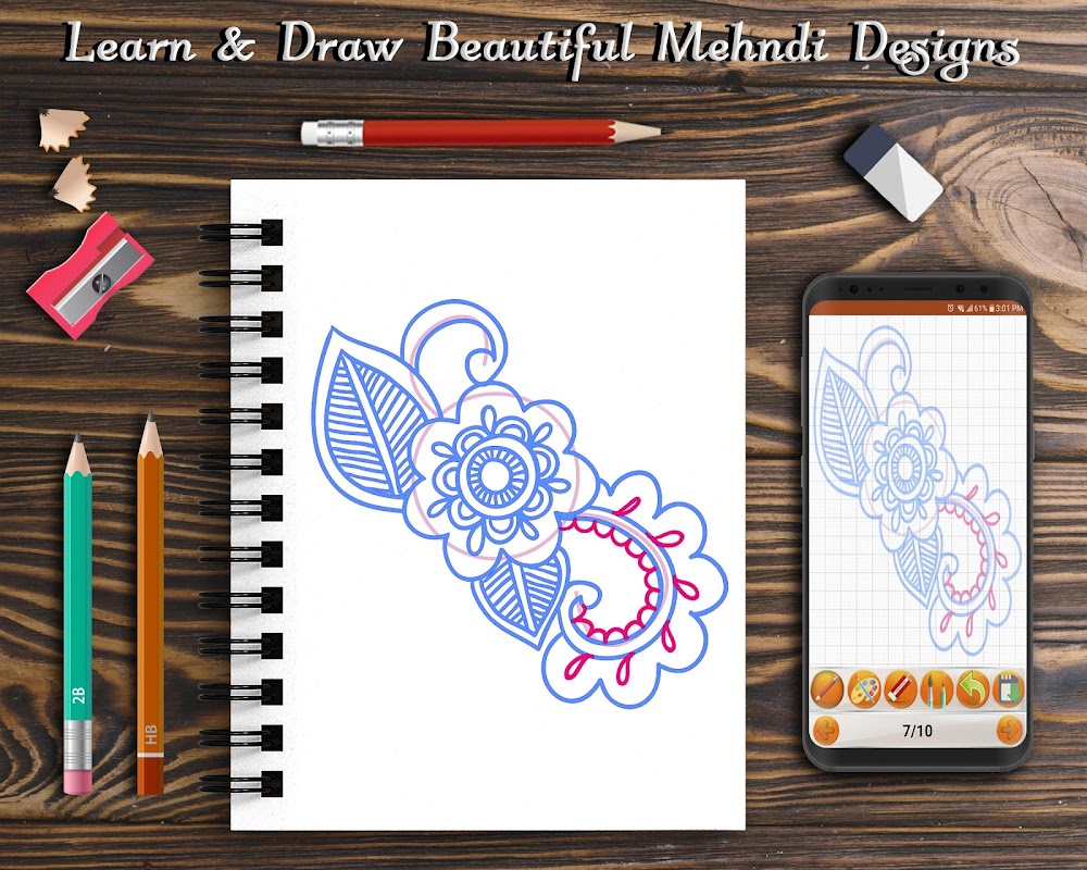 Learn to Draw Beautiful Mehndi designs is a learning app that teaches you How to draw beautiful mehndi patterns step by step. Learn mehndi designs app is fully entertaining and fun activity for teaching you to learn how to draw basic mehndi designs of all types. Every girl loves to draw mehndi tattoos on her skin and with the help of this mehndi app, you can draw latest mehndi designs which will make you look different from others on every occasion.