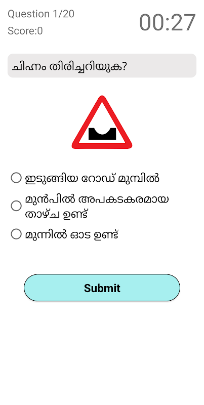 这款应用助您练习喀拉拉邦机动车辆管理部门组织的驾照学习考试。它支持马拉雅拉姆语和英语,包含 150 多道考题、道路标志、驾驶规则以及模拟考试。