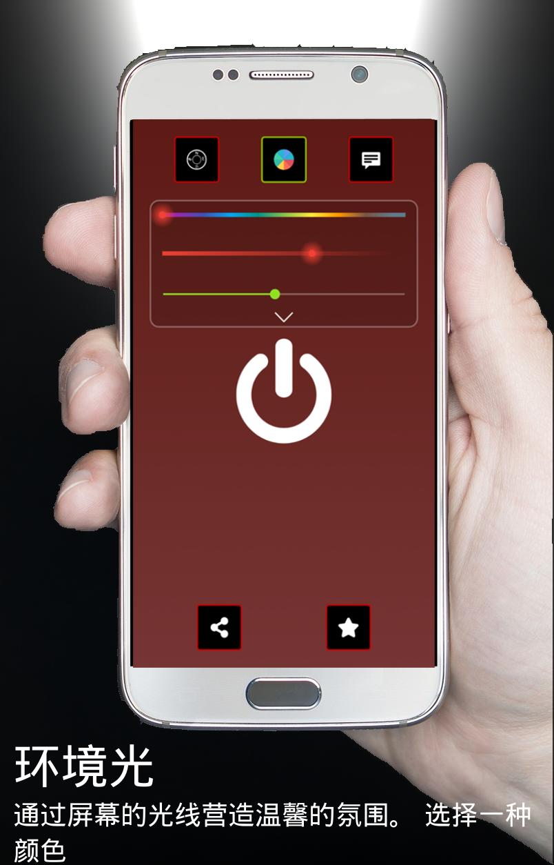 您可以轻松简单地创建所需颜色的环境光。此手电筒的一个选项是用最适合您需要的光线颜色和强度照亮屏幕。