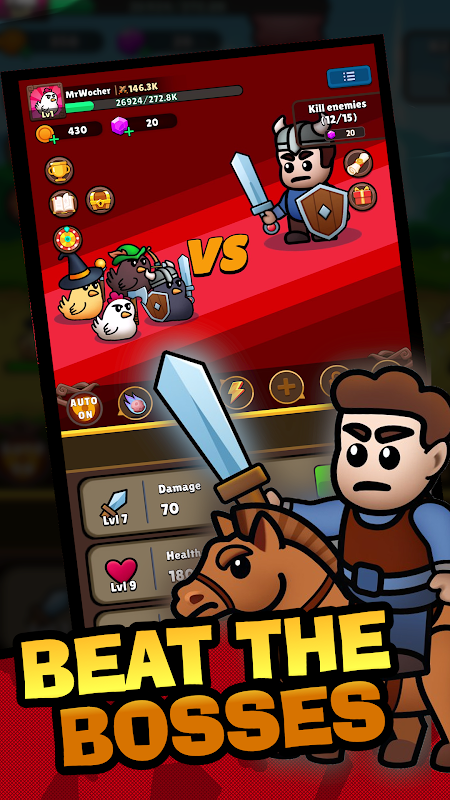 - 与你的英雄一起粉碎敌人,击败首领,赚取金币并收集战利品!杀死你遇到的每一个战士!