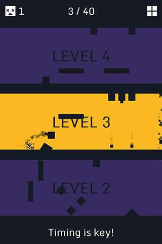 Tap and hold to make the square move. Once each level is complete you will level up to the next obstacles and challenges. Each level brings new patterns of obstacles to overcome.