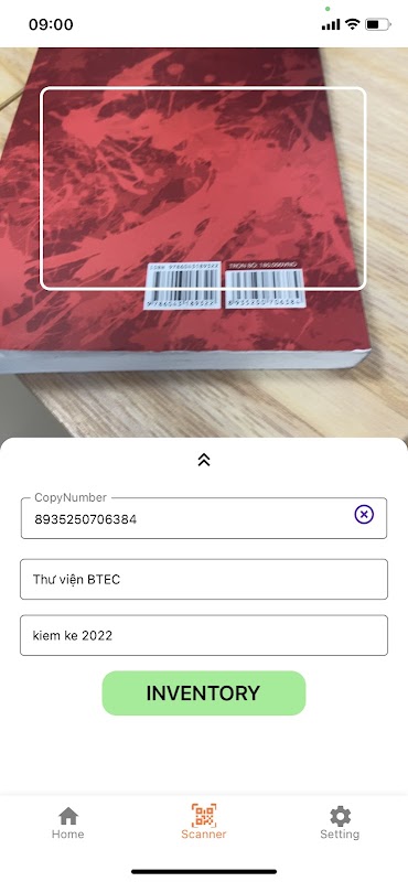 该应用程序支持通过条形码或二维码的图书库存