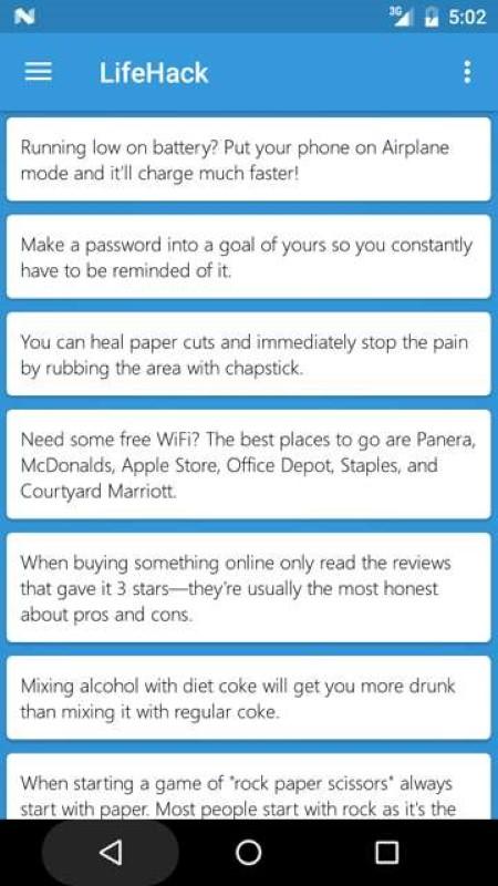 Life Hacks is very easy to use and you have the ability to quickly share idea with your friends.