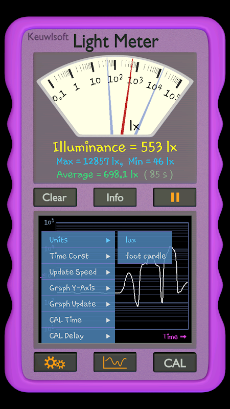这个应用程序使用的光传感器来测量光照度在每平方米(LX)或每平方英尺(英尺烛光)流明流明。 FOR仅指示。结果取决于您的设备和硬件上的(不是每个设备都有一个光线感应器和传感器的大量质量各不相同)。其特点包括: