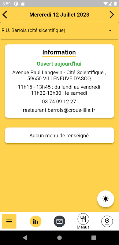 - 您最喜欢的 Crous 餐饮店的菜单。