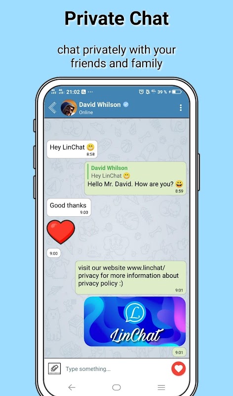 LinChat App is a social network where you can talking with friends, create thematic communities, making new acquaintances and much more. LinChat combines everything that is needed for an interesting leisure. This is an ideal place to: - watch videos and photos of friends and favorite bloggers; - listen to music (wait for update); - make dating for free. LinChat has many opportunities for communication. Create a two-person chat or shared chat with several people to keep in touch with loved ones. Messages will always accurately convey your emotions thanks to stickers. Try LinChat App messages and you will no longer need other messengers to communicate. Express yourself and draw attention to your creativity: create groups and place your own in them