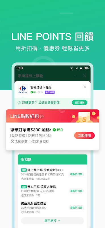 02 购物赚取LINE POINTS 回馈,用点数折抵消费金(Shop, and we'll LINE POINTS you back):