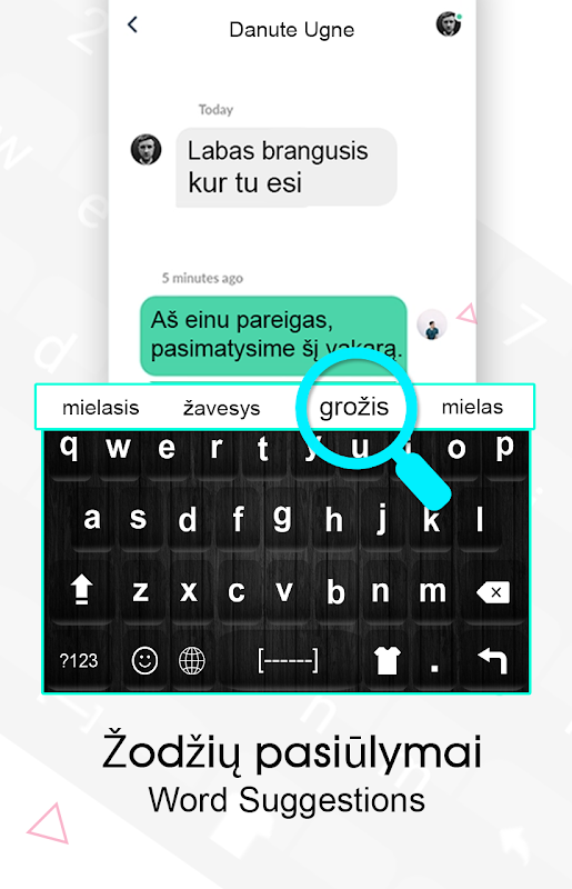 您可以从键盘本身将语言英语更改为立陶宛语或将立陶宛语更改为英语。使用立陶宛语英语键盘,您可以编写将英语翻译成立陶宛语的所有立陶宛语字母,字母和单词。轻松的立陶宛语键盘设计有大量令人惊艳的主题。在各种主题之间选择。选择您最喜欢的主题并编写立陶宛语字母。立陶宛语键盘-立陶宛语键盘键入应用程序可帮助您输入带有单词建议支持的立陶宛语字符,从而为您提供建议的单词。立陶宛语键盘-立陶宛语键盘键入是一个Android应用程序,您需要Android设备才能使用此立陶宛语键盘:立陶宛语键入应用程序。立陶宛语键盘-立陶宛语键盘键入应用程序是一个简单的键盘,在您将该键盘设置为默认键盘后,它将代替您的默认键盘出现。
