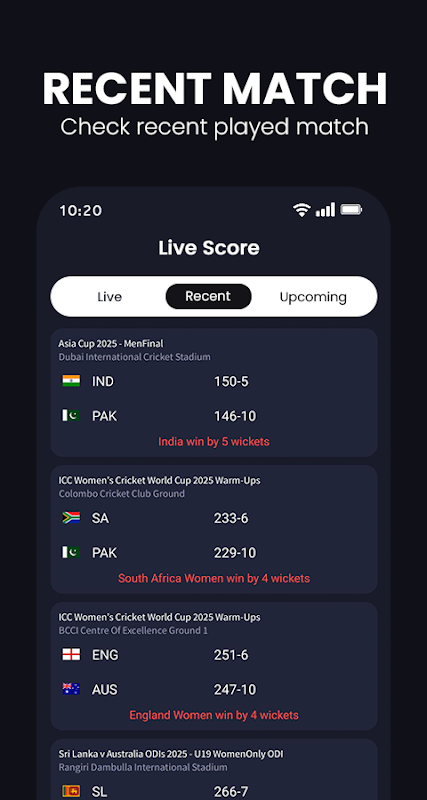 Live Cricket Score delivers quick, real-time ball-by-ball updates and match info to keep you ahead of the game — all in a lightweight and easy-to-use app.