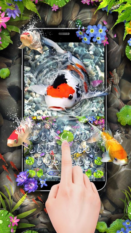 The Lively 3D Koi Fish Keyboard Theme is a gorgeous fish pond wallpaper with sassy crystal waterdrop keypad, which is specially designed for calm nature lovers. We will bring your smartphone a convenient typing with the koi fish🐟 swimming in the slick stone background & nifty lotus front keypad! Get this Lively 3D Koi Fish Keyboard Theme for free NOW!