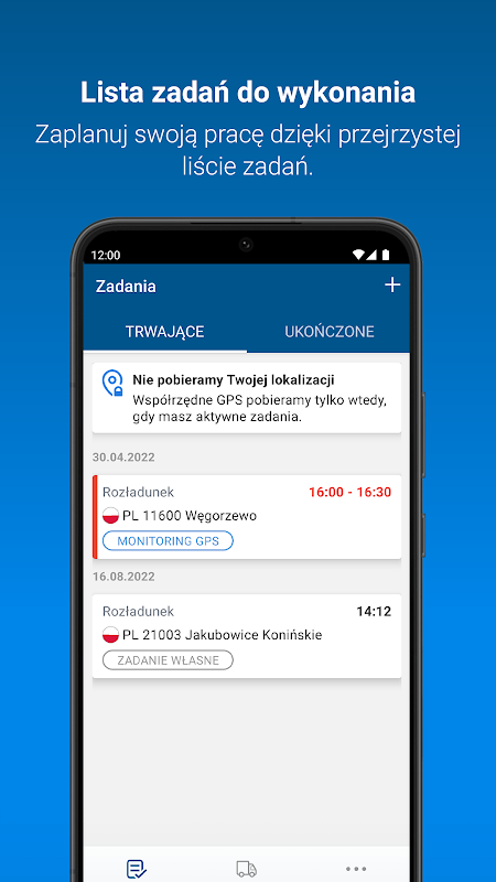 该应用程序使驾驶员更容易执行任务,并允许按执行顺序详细查看任务。借助该应用程序,司机可以快速联系调度员,报告任何问题和延误。