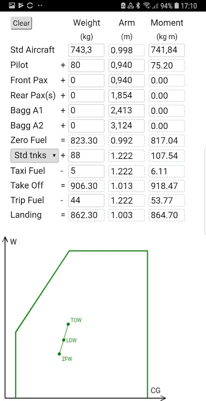 只需输入飞行员,乘客,行李和燃料的各种重量值即可。
