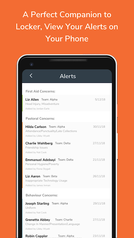 Staff using Locker in their sports club can use this companion mobile app to receive alerts and create concerns.