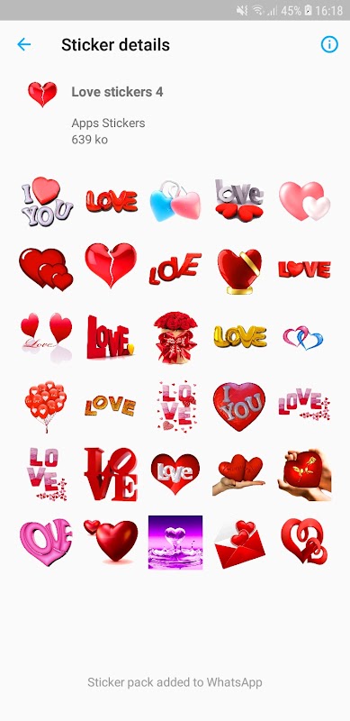 So you can send romantic love stickers directly on WhatsApp. Use love and hearts stickers and add cute romantic stickers and “I Love You” stickers to your chat. You can send wonderful loving messages to lovers and for her or for him.