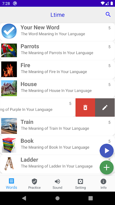 This is the time to Learn new language in an easy way. This app will help you to learn English, French, Spanish or any other language in an easy and effective way. By using this App, you can simply memorize words, listen to the right pronunciation and check how the word is used by a native speaker. Another cool feature of this app is that it allows you to practice memorizing the words in different ways. This App provides 10 levels for each word. You can increase or decrease the level of difficulty for each word depending on your proficiency level. Also, the App allows you to take photos or upload photos from your phone to make it easier for you to memorize. In order to help you with listening to the right pronunciation, the app has a list of sounds from which you can choose. Finally, all the words that you enter will be saved on your device and you can practice them offline and online.