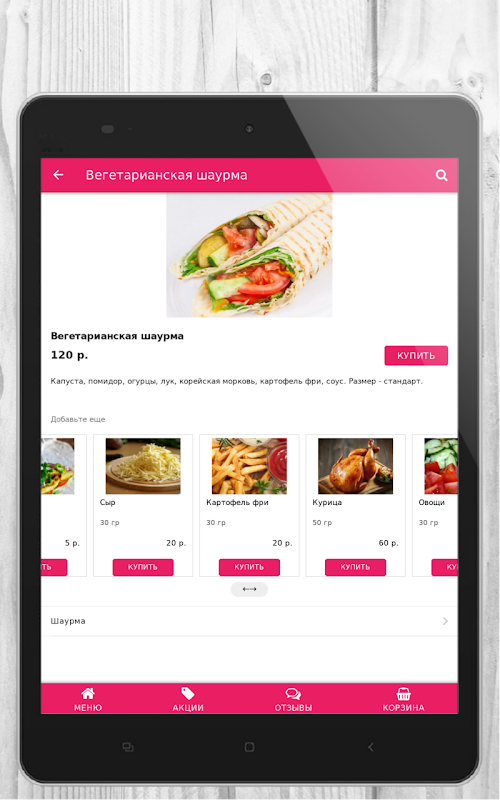 Заказать вкусную еду просто и удобно через приложение – несколько кликов и уже через 15 минут Вы сможете забрать свой заказ в любой удобной точке самовывоза! Вам не придется ожидать в очереди свой заказ!