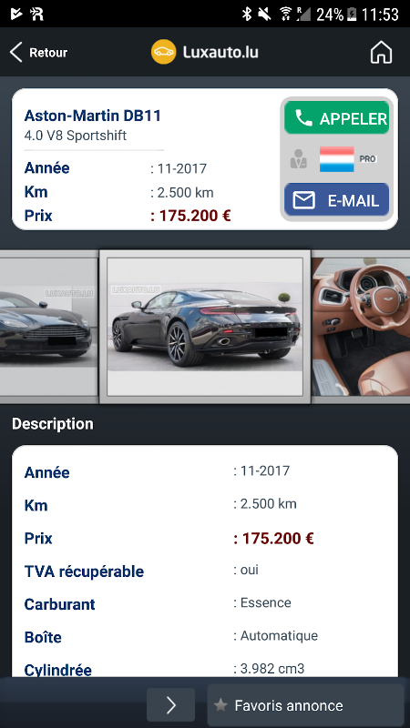 This android app helps you, just as easily as on the site www.Luxauto.Lu, to find what you are looking for among professional and private ads.